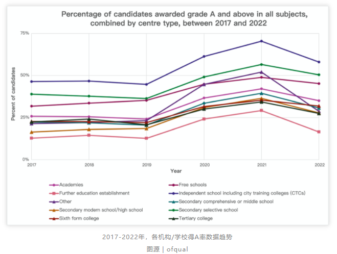 剛好ofqual發(fā)布了2022年的大考數(shù)據(jù),結(jié)合起來為大家分析分析,有數(shù)據(jù)、有真相!低年級的學生和家長們也可以早做準備~?