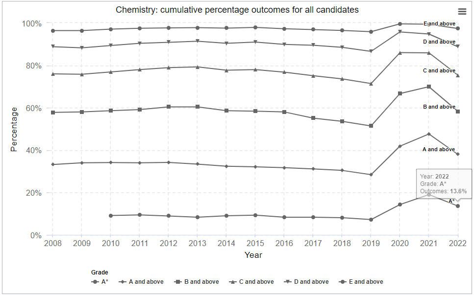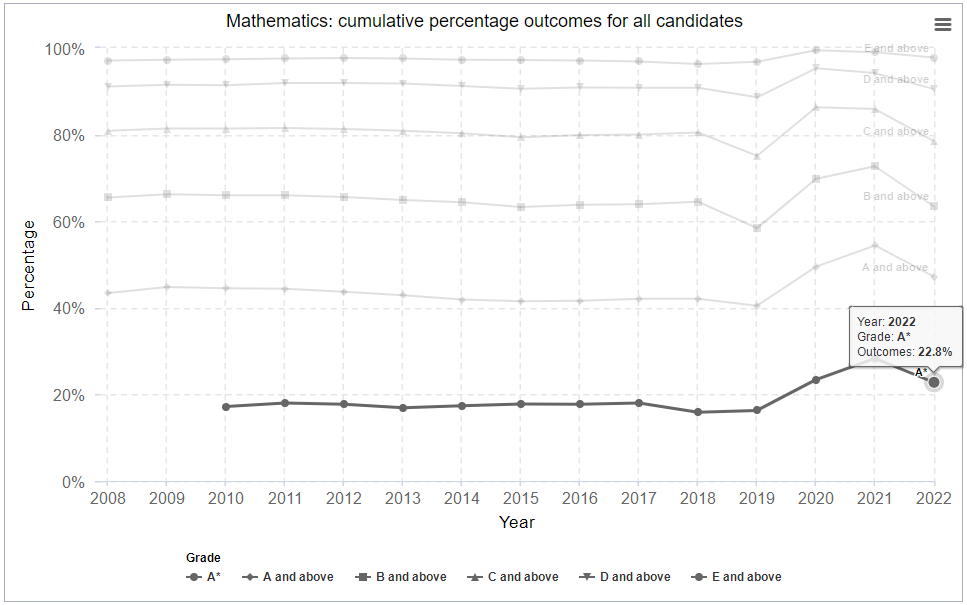 夏考放榜過后,Ofqual官方發(fā)布了,英國英格蘭地區(qū)2008-2022,15年來的A-Level各個科目分?jǐn)?shù)趨勢變化!