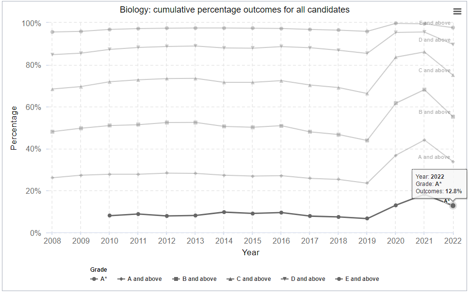 相較于2021年,2022年各科A*率全員暴跌,部分科目A*更是慘不忍睹。