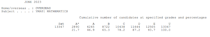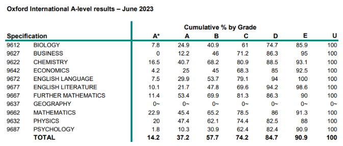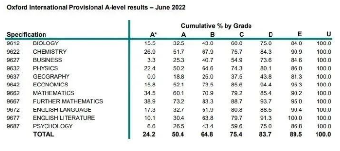 牛津AQA的整體A*率是24.2%。A*/A的比例是50.4%。
