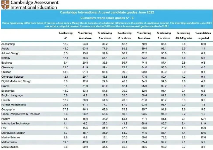 整體而言,三大考試局易得A*的科目基本集中在數學、進階數學、物理、化學、生物等科目,同時中文的A*也比較高,但是由于部分院校對中文學科的認可度不高,所以同學們還需謹慎選擇。