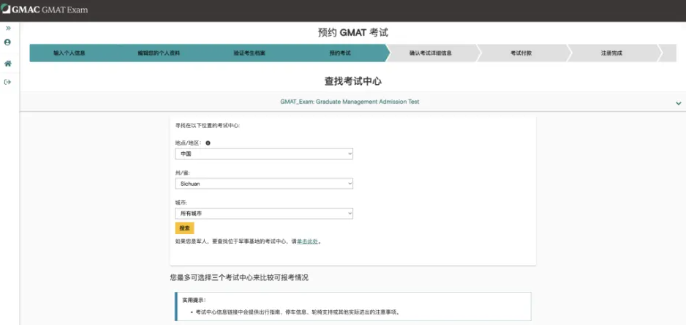 系統(tǒng)會(huì)根據(jù)住址推薦考試中心,可選擇最多3個(gè)考點(diǎn)進(jìn)行比較。