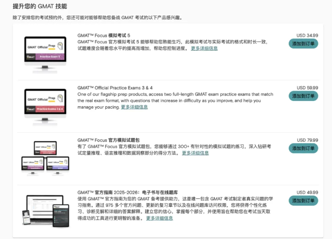 可在訂單中添加官方備考資料,為考試做好充分準(zhǔn)備。