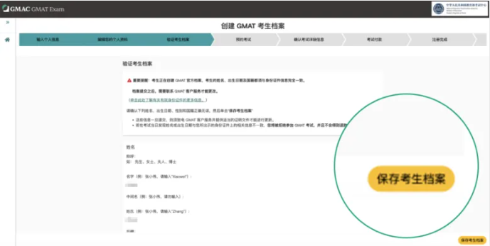 確認(rèn)無誤后點(diǎn)擊“保存考生檔案”,系統(tǒng)會(huì)為你生成GMAT ID(可在“My Account”中查看)。